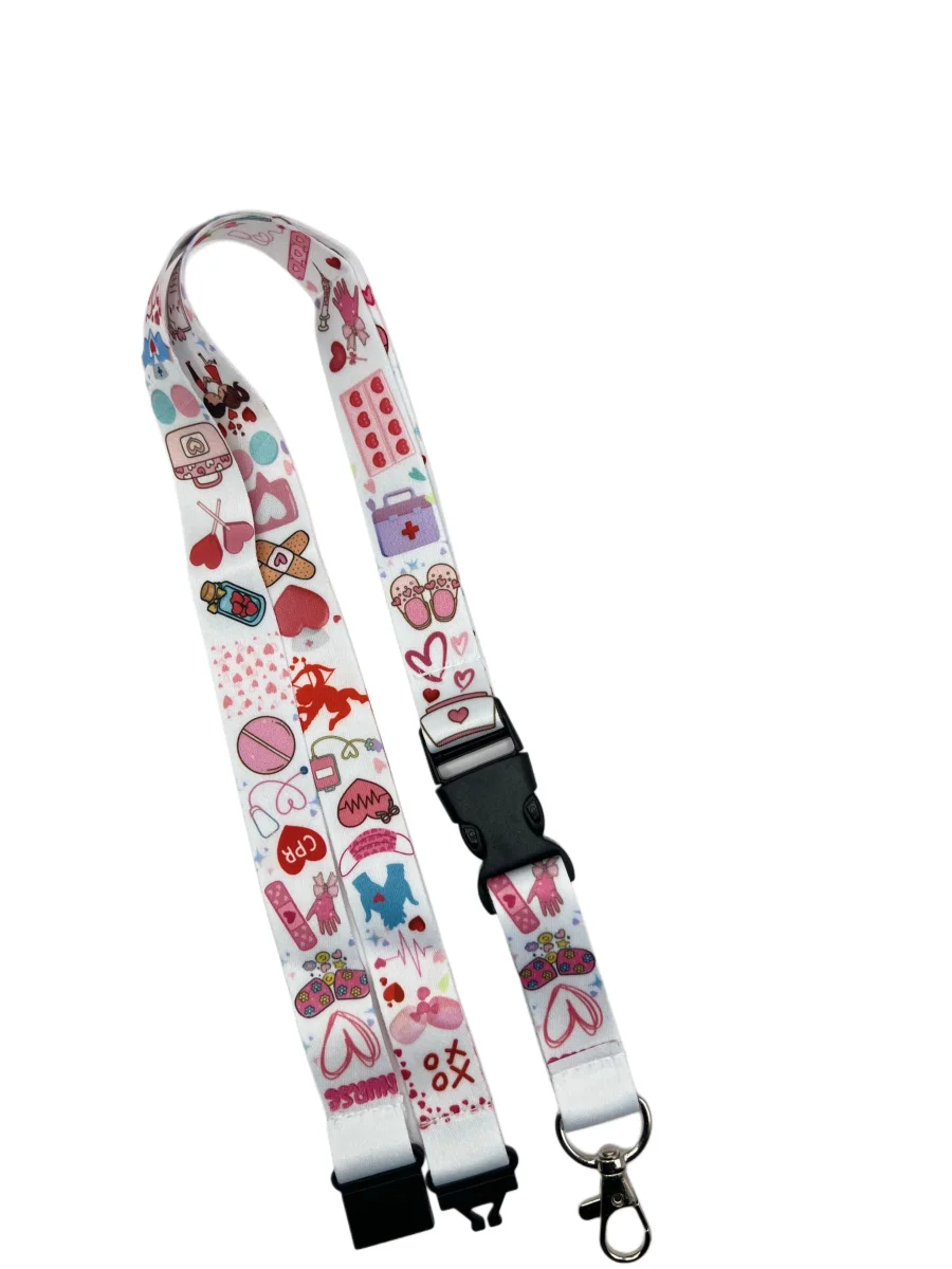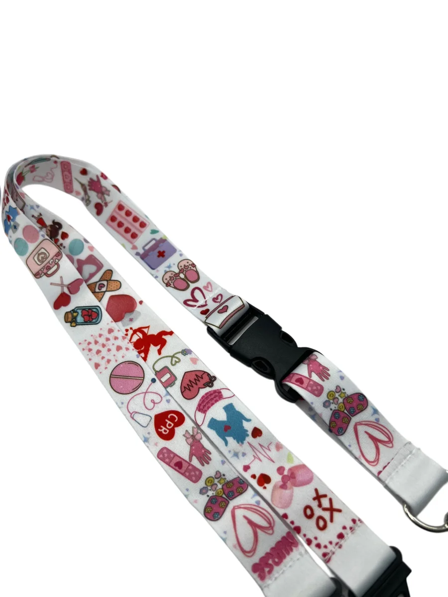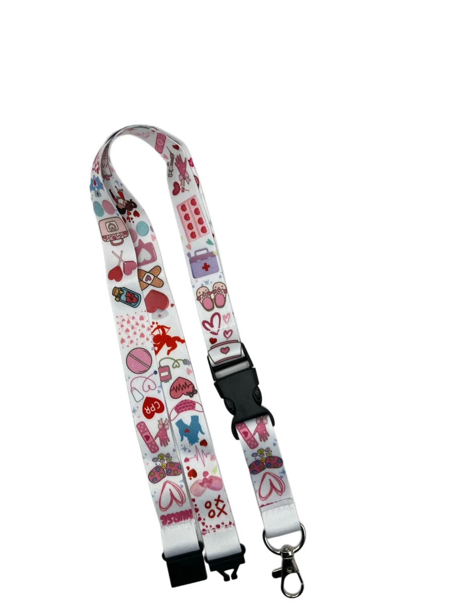 Heartbeat of Care är VårdaMedStils mest hjärtevärmande nyckelband – fyllt med hjärtan, EKG-linjer, söta vårdsymboler, små tabletter, handskar, mask och stetoskop. Ett mönster som visar stoltheten i att vårda – med både hjärna och hjärta.