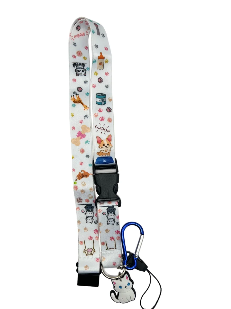 VetCare Paws Edition är ett färgglatt, mjukt och charmigt nyckelband fyllt med allt som gör veterinärlivet unikt: hundar, katter, små tassar, mjölkflaskor, burkar, hjärtan och söta djurillustrationer i lekfulla färger.