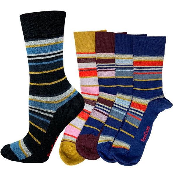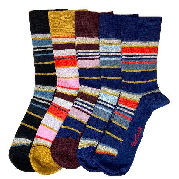 I detta 5-pack är inget par det andra likt vilket ger en stor variation i vardagen. Svart, senapsgult, vinrött och blått utgör basfärgerna med små inslag av bland annat orange, rosa och turkos. De är lika snygga på henne som honom och finns därför i både dam- och herrstorlek. Tack vare den mjuka bambuviskosen är de extra svala och skonsamma mot huden vilket ger ökad och väldigt långvarig komfort. Dessutom har de en bred resår som ser till att strumporna sitter uppe extra bekvämt.