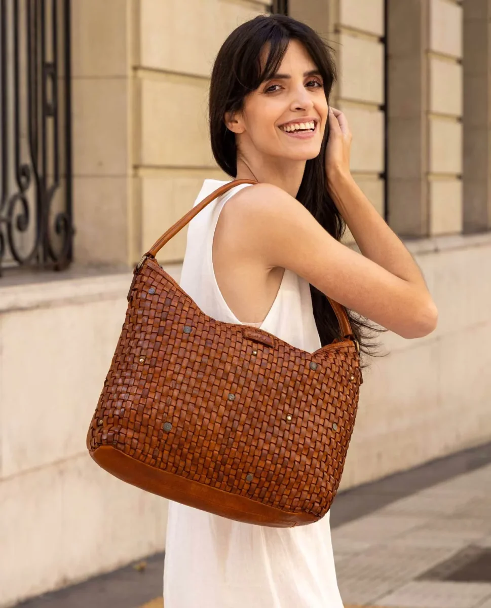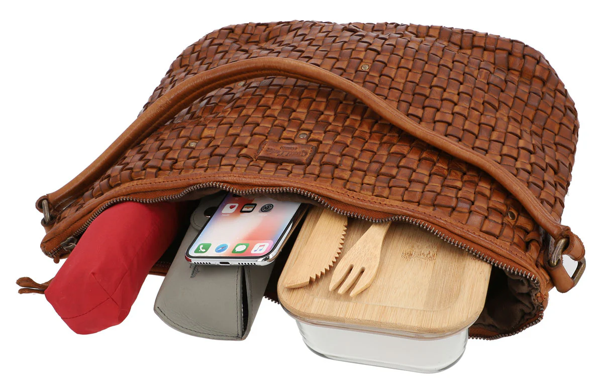 Den medelstora designen på ”Aarna” passar alla stilar och tillfällen. Den är omsorgsfullt handvävd och helt unik, perfekt för den moderna livsstilen. Meden säker dragkedja håller den dina värdesaker alltid i säkert förvar. Ett måste för den modemedvetna.