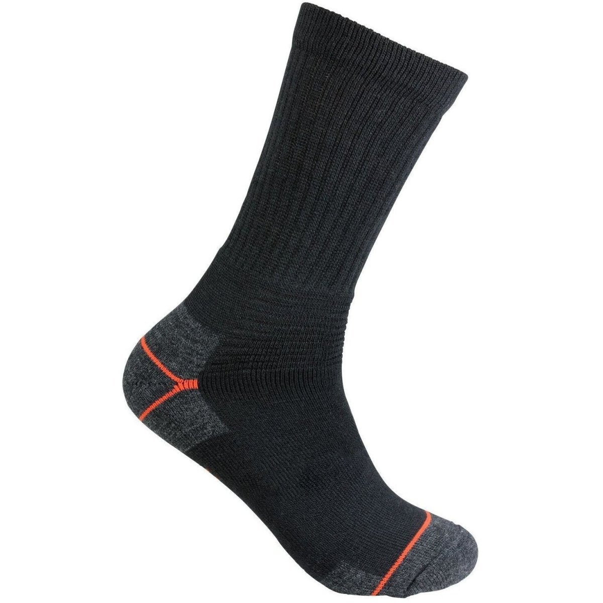 Det ribbade skaftet i kombination med de elastiska ribbade kanalerna på ovansidan foten tillåter strumporna att formas efter varje enskild fot vilket ger ett smidigt och bekvämt resultat. Dessutom består hela insidan av foten av mjuk frotté vilket både ger extra komfort och dämpning under ditt arbete. För att bättre på slitstyrkan ytterligare har de också förstärkt tå och häl.