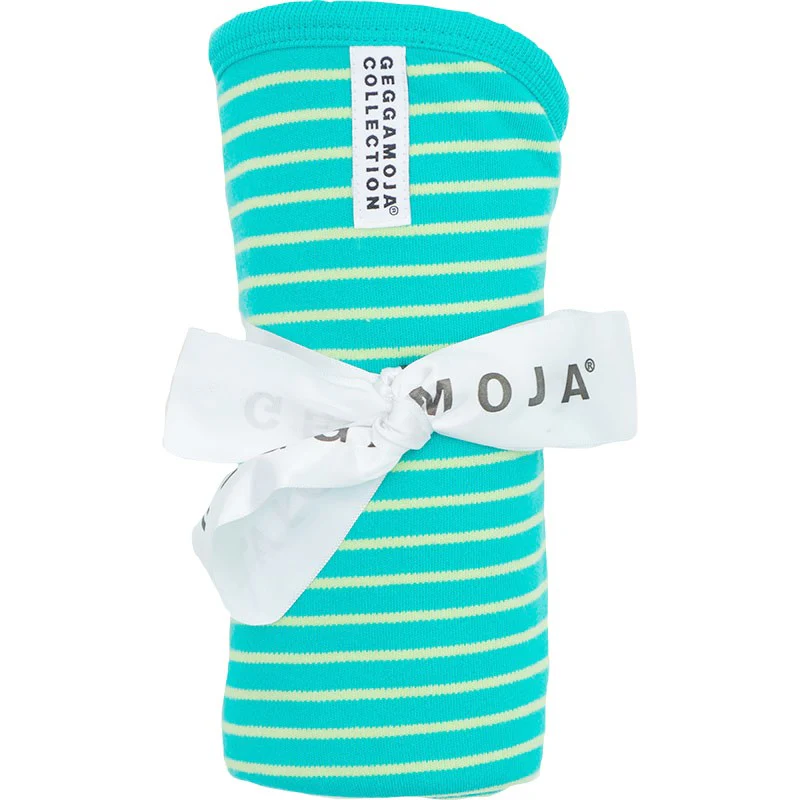 En underbar filt, 70×80 cm, som passar till det mesta – som täcke, snuttetrasa, koja eller vindskydd till exempel. Klassiska Geggamojaränder på ena sidan och enfärgad baksida. Ett litet band med knäppning håller fast napp eller leksak. 100% ekologisk, GOTS-certifierad bomullstrikå.