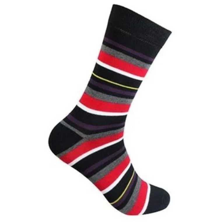 Randiga strumpor finns i oändligt många varianter och går aldrig ur tiden. Denna variant leker med olika storlekar och färger på ränderna vilket ger ett mer intressant och levande uttryck utan att för den delen sticka ut för mycket. Ett extra plus är att de är gjorda av en silkeslent mjuk blandning av bambuviskos som är skonsam mot huden och som dessutom är otroligt behaglig att ha på sig. Bambun håller även dina fötter hälsosamma då de motverkar bildningar av både fotsvett och svamp. Nu behöver du alltså inte oroa dig för fuktiga och instängda fötter längre!