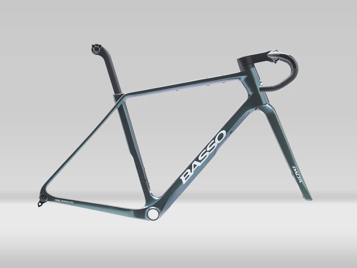 Basso Palta III Ramkit är en avancerad gravelram som kombinerar italiensk design, låg vikt och teknisk precision. Den evolverande designen ger ett konsekvent och igenkännbart formspråk med den karakteristiska “elbow”-bakänden, hög infästning av bakstag och en avancerad gaffelarkitektur för exakt styrning. SV-downtuben förbättrar styvhet, aerodynamik och viktfördelning, medan Torayca-kolfiber (T800, M40JB och T700) bidrar till en ramvikt på endast 970 g i storlek M. Ramen är utrustad med UDH-växelöra (Universal Derailleur Hanger) för maximal kompatibilitet och enkel service. Med däckfrigång upp till 52 mm fram och 50 mm bak samt integrerad intern förvaring och flera monteringspunkter är Palta III en komplett plattform för modern gravel, tävling och äventyr.