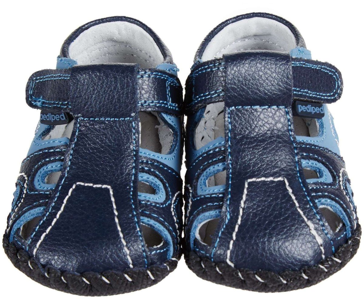 BRODY NAVY/L.T. BLUE ORIGINALS Supersnygga sommarsandaler i äkta läder! Passar perfekt för all sorts aktivitet, både ute och inne. Även fodret är tillverkat i läder, vilket gör skon luftig och tillåter foten att andas. Hållbar och i bra kvalitet. Den mjuka sulan av läder i Pediped Originals barnskor gör att stegen nästan blir som att gå barfota, och är därför starkt rekommenderad av barnläkare. Sulan är mycket flexibel för att följa fotens rörelser, och är räfflad för ett bra grepp. Skon har kardborreband som håller den på plats på foten, och gör den lätt att ta av och på.