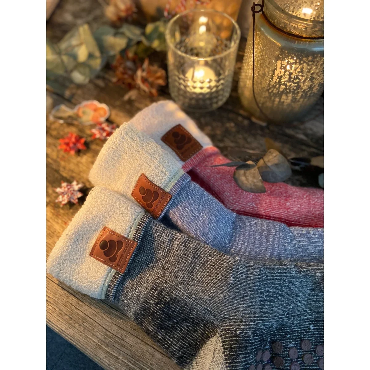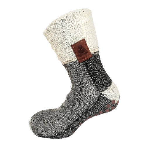 Nästan som en sko fast i strumpform – så skulle man nog kunna beskriva dessa rejäla och härliga ullsockor från Supcare. Den lite kraftigare ullkvaliteten i kombination med den fluffiga insidan av frotté gör att de omfamnar dina fötter på ett varmt och behagligt sätt. Eftersom de har halkskydd under fötterna ger de dessutom känslan av att vara ett par riktigt varma och mysiga inomhustofflor. Perfekta för att ligga i soffan och mysa en riktigt rusk vinterdag. Skaftet på strumporna går utmärkt att vika ner som på bilden, men kan även dras upp om man önskar ett högre skaft.