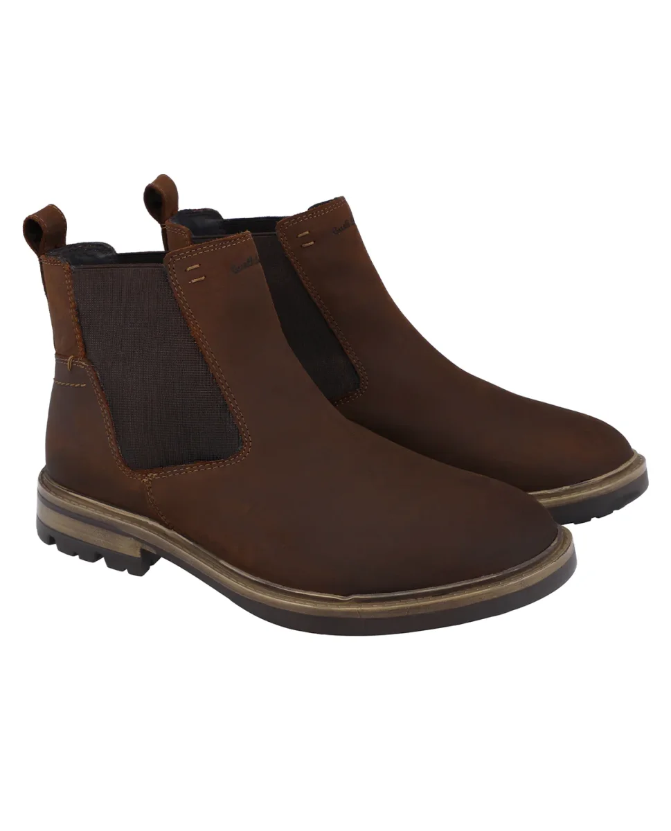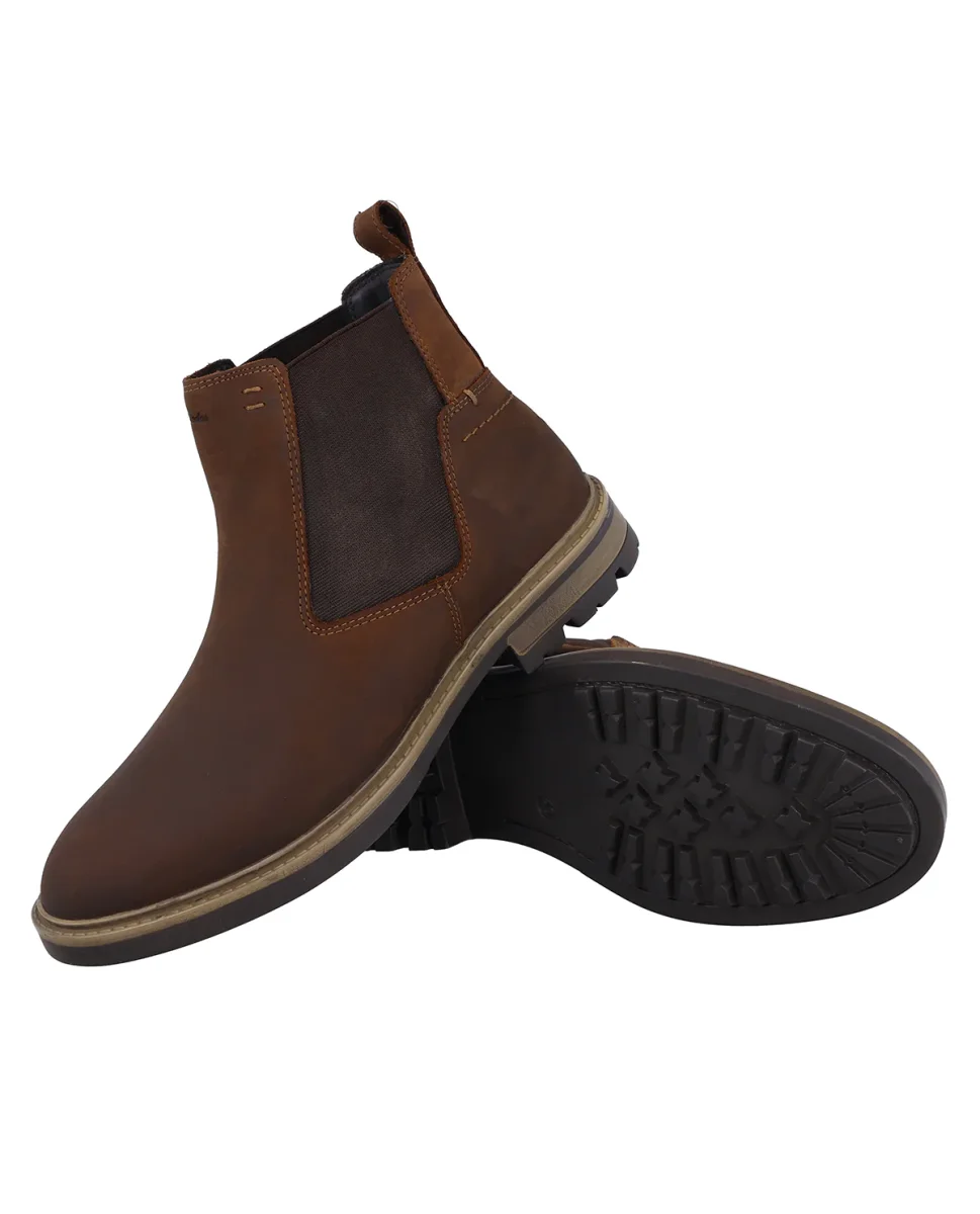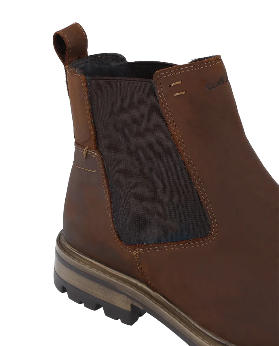 ”Cedric” Chelsea-stövlarna kombinerar klassisk stil med högkvalitativt hantverk och förstklassig komfort. De är tillverkade av robust läder med en lätt vintage-känsla och imponerar med sin naturliga struktur och eleganta utseende. De elastiska, svarta sidopanelerna gör det enkelt att ta på och av skorna, medan den dekorativa horisontella sömmen ger skon det där lilla extra. Den praktiska dragöglan i läder på hälen, förstärkt med en korsstygnssöm, garanterar hållbarhet och gör det lättare att ta på sig skon även vid frekvent användning. ”Cedric”-stövlarna finns i storlekarna 40 till 45 och anpassar sig perfekt efter din fot.