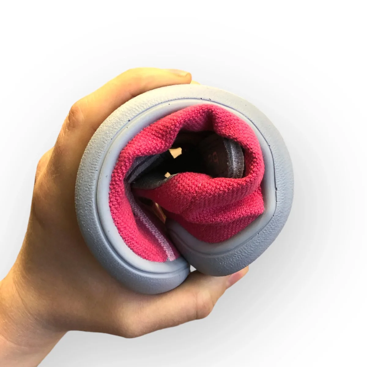 The shoes are designed with a large toe box so that the childs feet can grow easily and naturally without being restricted in any way. A very thin and flexible sole with equal thickness ensures the feeling of barefoot walking.