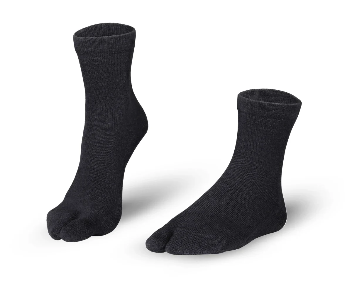 Knitido Cotton & Merino Tabi strumpor är tvåtåstrumpor i en mjuk och behaglig blandning av merinoull och bomull, älskade av många för sin komfort och funktion. Merinoullens fukttransporterande egenskaper håller dina fötter torra och bekväma, medan temperaturregleringen gör dem användbara året om — svala på sommaren och varma på vintern.