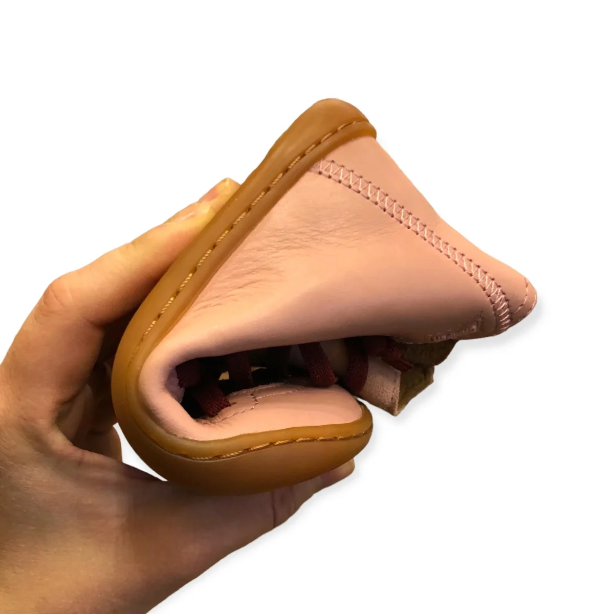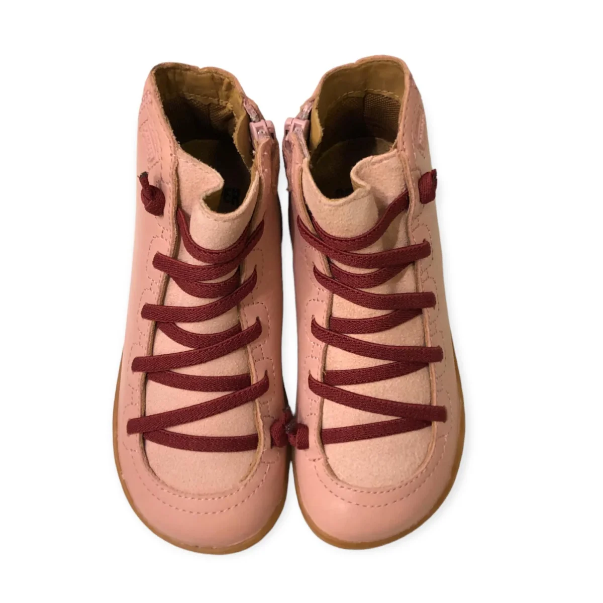 Pink leather and nubuck boots for kids with 100% rubber outsole (20% recycled).