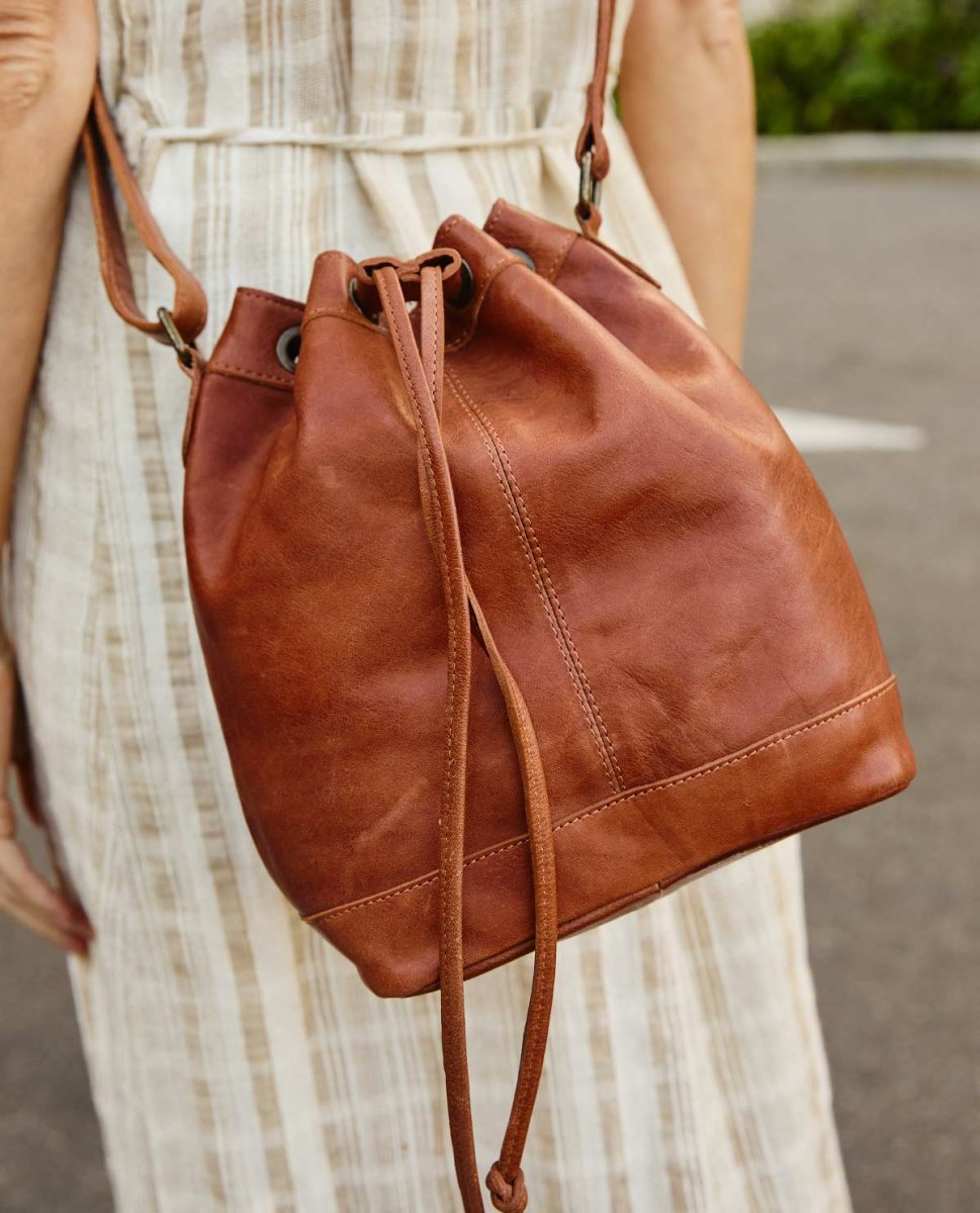 Genom staden, till parken eller på en cocktail med vänner? En trogen följeslagare för alla livets situationer? Hobo-väskan ”Ivy” är svaret på alla dessa frågor. Den imponerar med sin avslappnade vintage bucket-design i behagligt taktilt nötläder. Oavsett om det är fester, brunch eller picknick – ”Ivy” passar alltid!