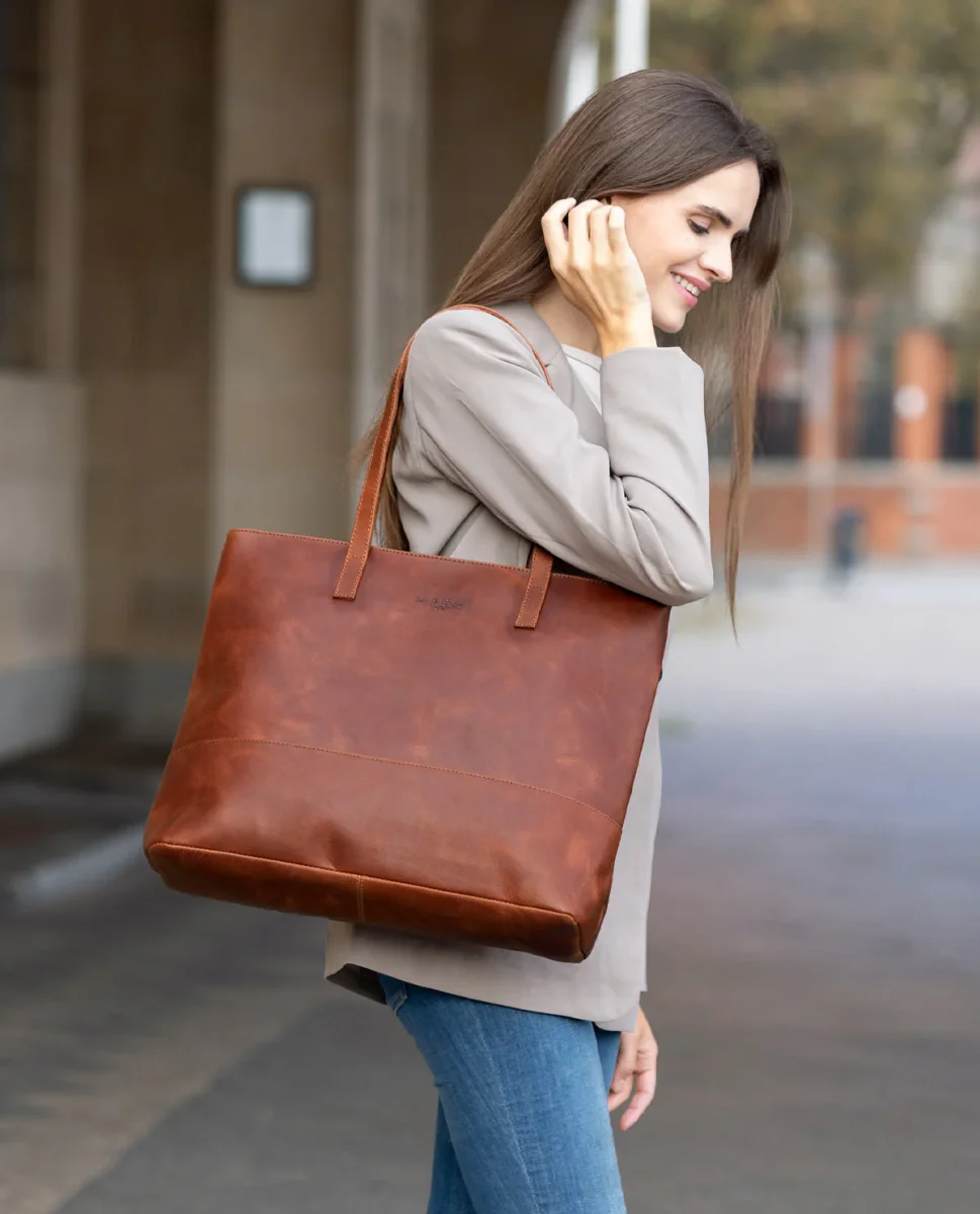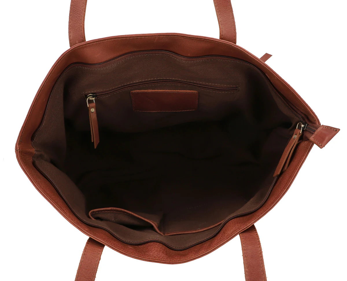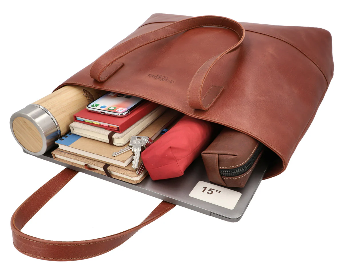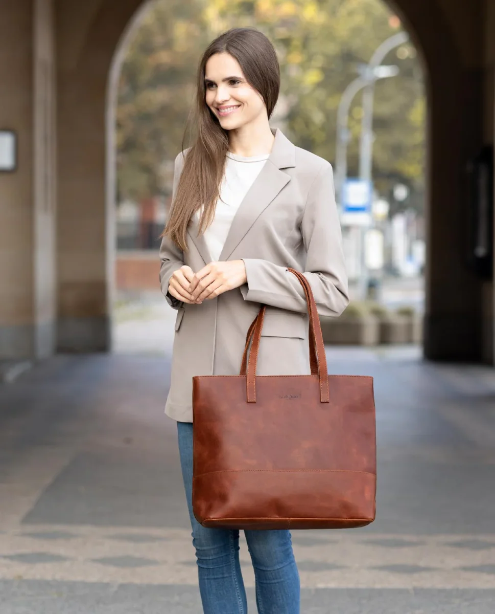 Ska du ut på stan efter jobbet? Kanske göra veckohandlingen eller hellre strosa runt lite? Inget problem! Det extra stora innerfacket i ”Carine” har plats för allt. Här får din 15-tums bärbara dator, din vattenflaska, plånbok, diverse anteckningsböcker, nycklar och pennfodral plats. Dessutom finns det tack vare den stora öppningen tillräckligt med förvaringsutrymme för en och annan spontan inköp.Bärhandtagen i äkta läder rundar av designen på ”Carine”.