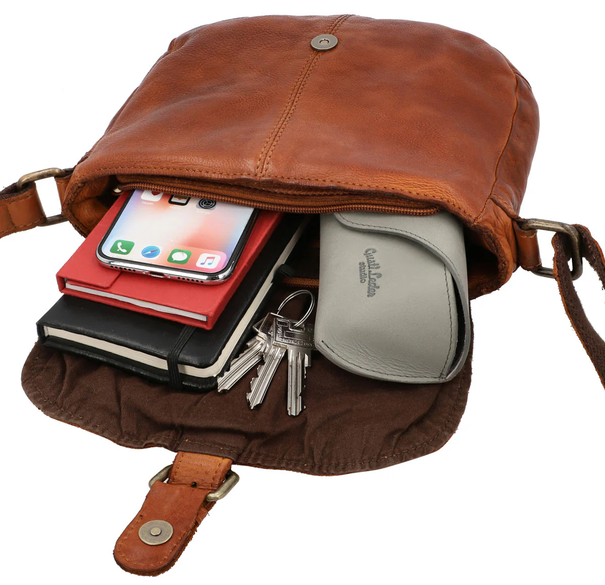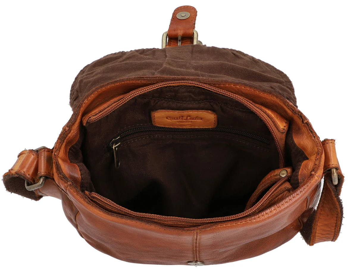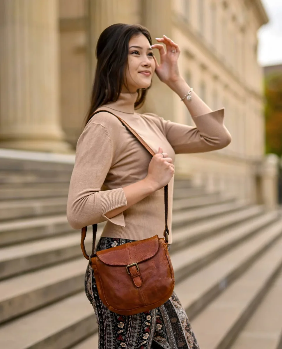 Candice imponerar utan tvekan med sitt utseende, men med tanke på sin storlek övertygar den framför allt genom sitt utrymme, som rymmer mer än bara dina absoluta nödvändigheter. Förutom plånbok, smartphone och nycklar rymmer ”Candice” utan problem även en e-bokläsare eller en klassisk pocketbok. Det bakre facket med dragkedja ger dig samtidigt möjlighet att förvara dina mest värdefulla tillhörigheter tätt intill kroppen och skyddade från tjuvar, medan väskans magnetlås i spänneutförande dessutom skyddar innehållet i ”Candice”s huvudfack med hjälp av en dragkedja. Det högkvalitativa nötläderet som använts till ”Candice” är mjukt redan från början och tål ändå vardagens små och stora påfrestningar! Och den jordnära, eleganta vintage-looken gör väskan till den perfekta följeslagaren på långa och korta promenader, utflykter till stan och kaffedejter med dina nära och kära.