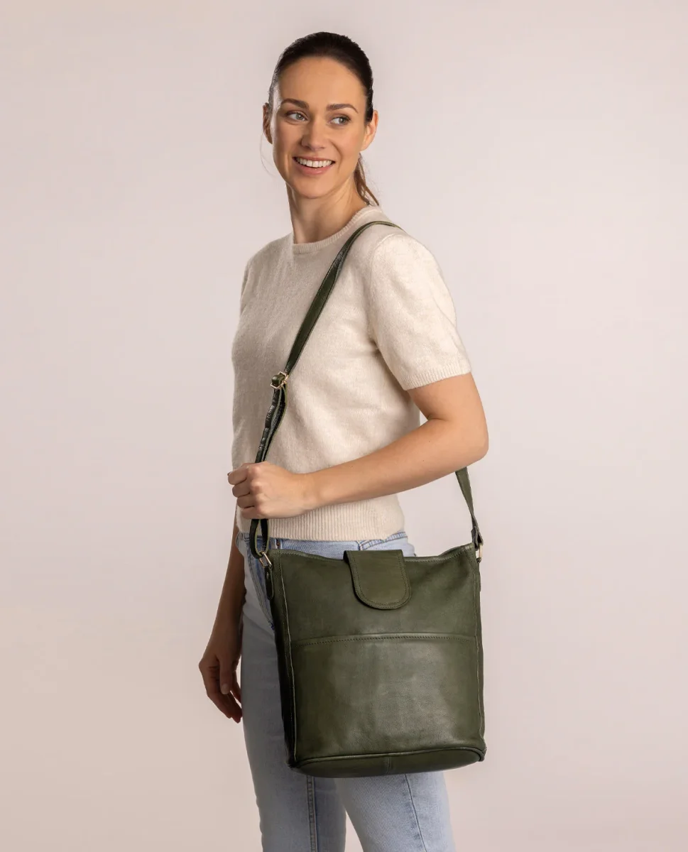 Huvudfacket på denna axelväska öppnas och stängs med en robust dragkedja, så att ingenting kan ramla ut eller stjälas. En flik med magnetknapp stänger ”Jacqueline” ytterligare. Så har du tillräckligt med plats för din vattenflaska, plånbok, diverse anteckningsböcker, nycklar och smink.Dessutom finns det ett mindre påsytt fack med dragkedja på framsidan, där du kan förvara mindre saker som smartphone eller hörlurar så att de alltid är nära till hands.