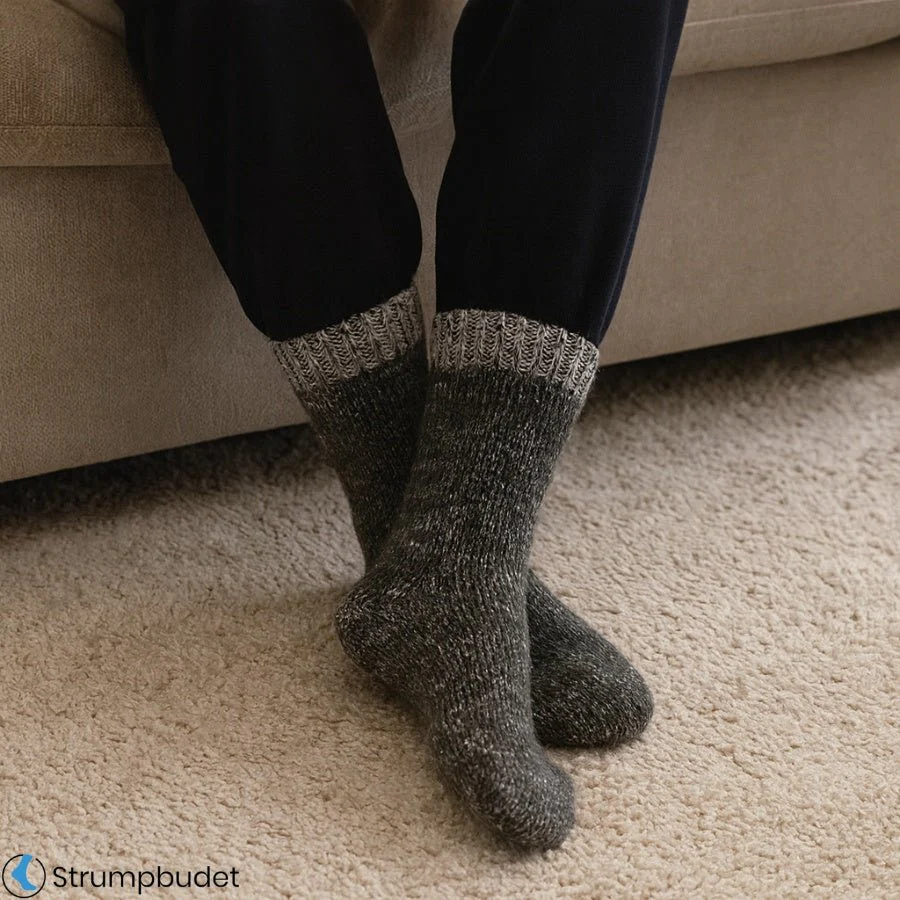 Inslaget av alpacka gör därför att dessa raggsockor upplevs mindre stickiga än vanliga ullstrumpor.