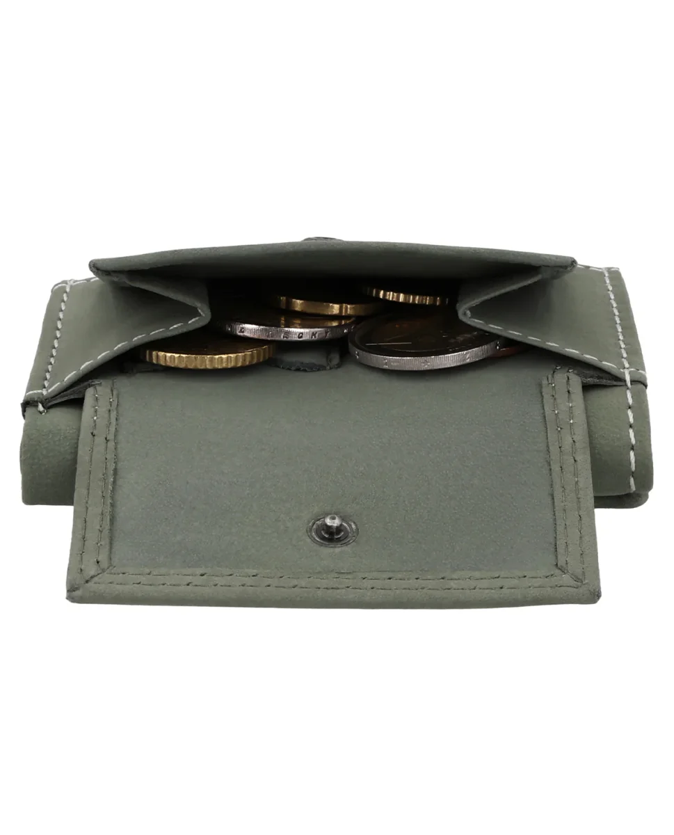 ”Ronald” övertygar med sina 3 fack, ett sedelfack och ett myntfack på framsidan som stängs med en tryckknapp. Så kan ingenting falla ut och allt förblir ordnat. För de små vardagsögonblicken finns det dessutom ett extra myntfack för en enda mynt – perfekt när du snabbt vill ha en passande mynt till hands. Dessutom har ”Ronald” ett fack på baksidan – för enklast möjliga åtkomst.