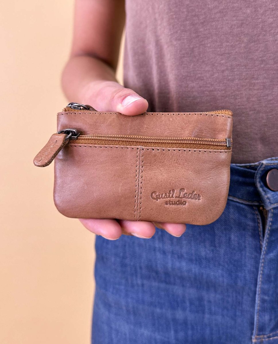 Detta nyckeletui i praktiskt fickformat har två separata fack som båda försluts med blixtlås. Det större facket har, som sig bör för en nyckelplånbok, en praktisk nyckelring där du fäster dina nycklar samtidigt som det finns plats över för exempelvis ett kontokort. Det mindre facket är perfekt för att få med sig lite mynt eller ett praktisk kundvagnsmynt.