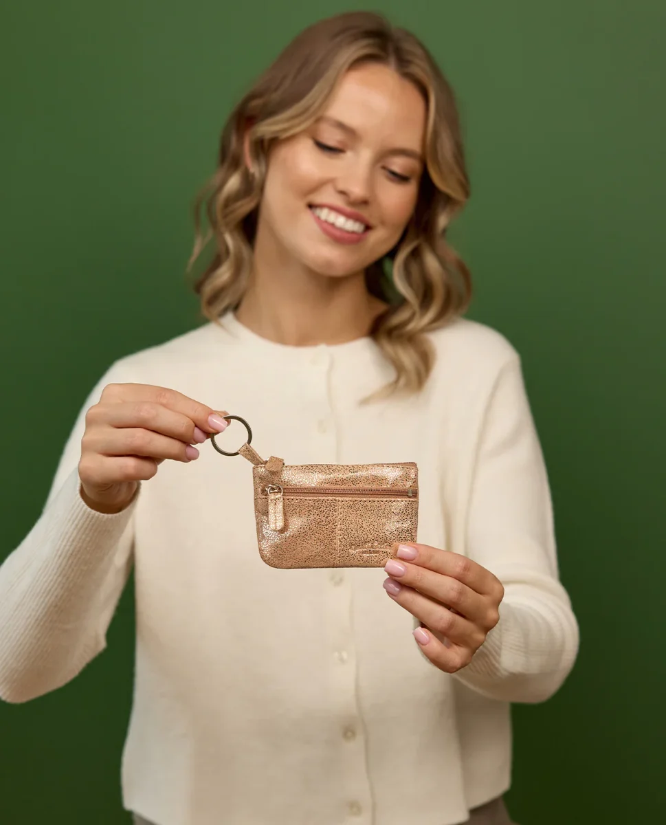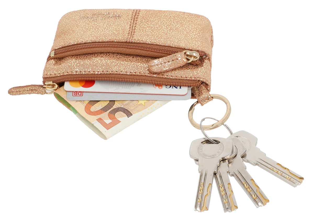 Med två separata fack, båda utrustade med högkvalitativa dragkedjor, är ”Rook” den perfekta hjälpen i vardagen. Det större facket har en integrerad nyckelring, perfekt för din nyckelknippa, och erbjuder samtidigt plats för sedlar eller kort. Det mindre facket är idealiskt för mynt eller en kundvagnspollett.