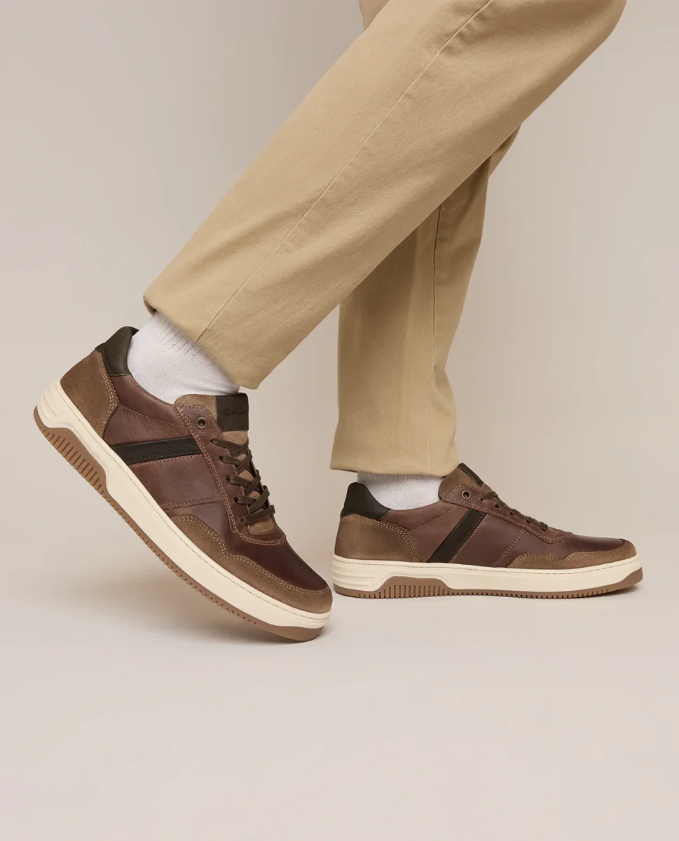 Det inre fodret av plast i en varm brun nyans säkerställer andningsförmåga och en behaglig känsla. Den bekväma innersulan anpassar sig försiktigt till din fot och ger dig optimalt stöd, medan den greppvänliga gummisulan ger stabilitet på alla underlag. Med den klassiska snörningen kan du anpassa skon individuellt till din fot – perfekt för vardag, fritid eller stadspromenader. Med ”Samy” upplever du en känsla av gång som harmoniskt förenar komfort och elegans – en sneaker som övertygar vid varje tillfälle.