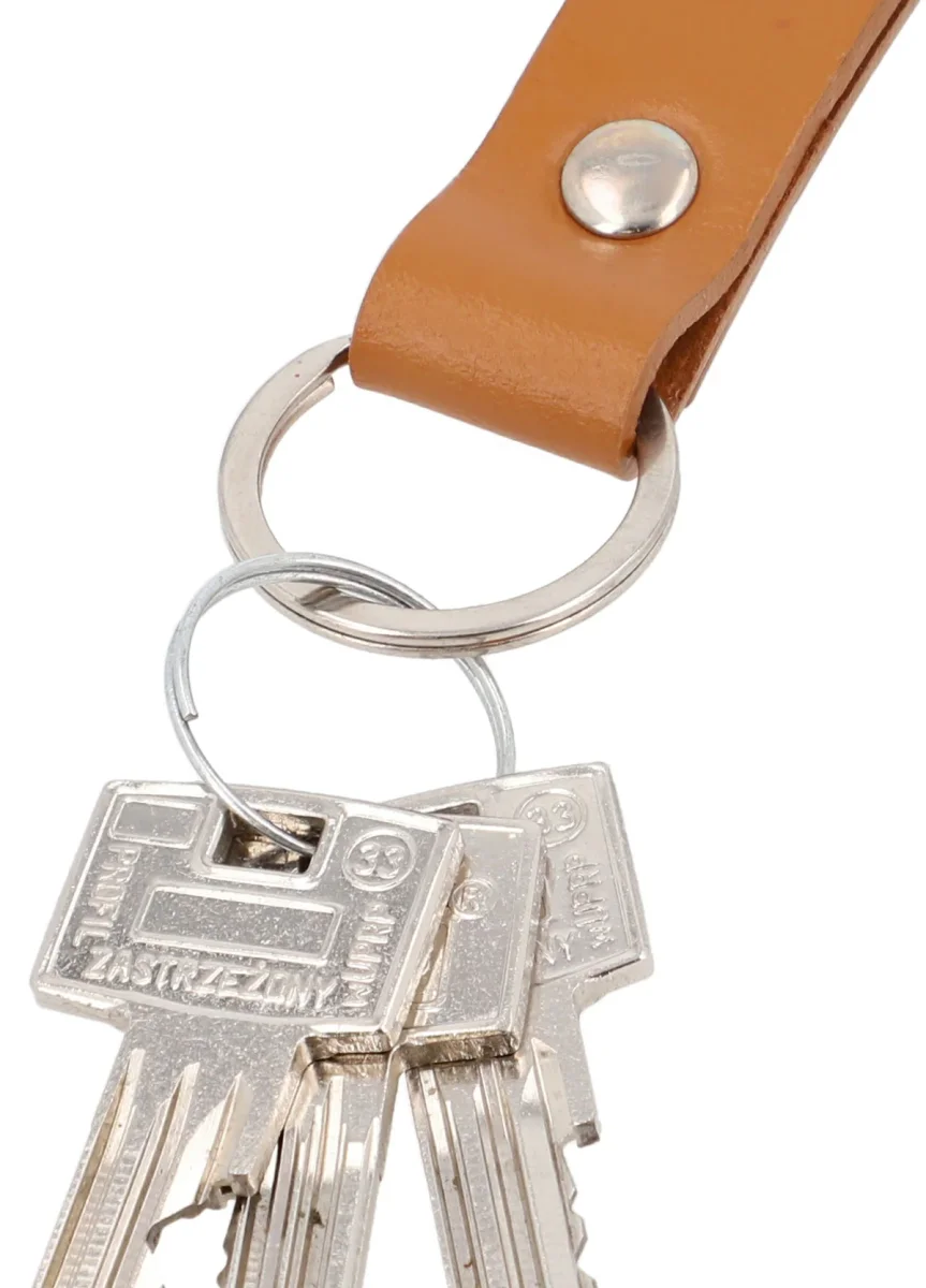 Vår nyckelring ”Shelton” är den perfekta presenten till dina favoritpersoner eller till dig själv när du vill unna dig något. Tillverkad av 100% äkta läder, erbjuder nyckelbandet inte bara hög stabilitet utan också en behaglig mjukhet. Det strålar i en trendig vintage-look och passar perfekt till din stil. Oavsett om det är för lägenhets-, trädgårds- eller arbetsnycklar – med ”Shelton” ser alla nycklar bra ut och är snabbt tillgängliga i din handväska eller ryggsäck.
