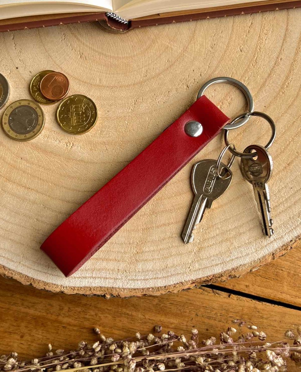 Vårt snygga nyckelband kommer i många olika färger – säkert finns din favoritfärg också. På nyckelringen kan du fästa så många nycklar och karbiner som du vill. Genom en individuell gravering får din vän eller flickvän inte bara en praktisk present, utan också en mycket personlig. Föreviga det gemensamma mottot eller lämna ett fint meddelande på den läderbundna nyckelringen ”Shelton”.