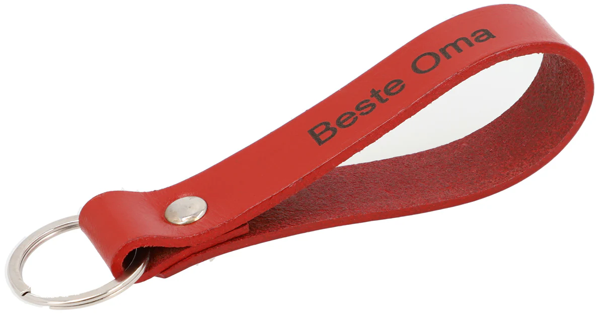 Den eleganta nyckelringen ”Shelton” finns i många olika färger – garanterat finns även din favoritfärg med. Du kan fästa så många nycklar och karbinhakar du vill på nyckelringen. Den graverade texten ger nyckelringen en personlig touch, så att din mormor inte bara får en praktisk, utan även en unik present. Ett perfekt tillbehör för varje handväska eller ryggsäck!
