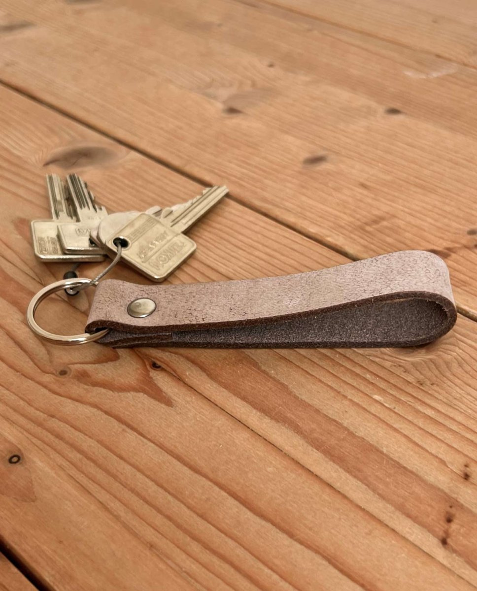 Vår nyckelring ”Shelton” är den perfekta presenten för dina favoritpersoner eller om du vill ge dig själv en gåva. Tillverkad av 100% äkta buffelläder är bandet inte bara mycket hållbart och samtidigt mjukt, det strålar också i en trendig vintage-look. Oavsett om det är lägenhets-, trädgårds- eller arbetsnycklar – här ser alla nycklar bra ut och är snabbt tillgängliga i din handväska eller ryggsäck.