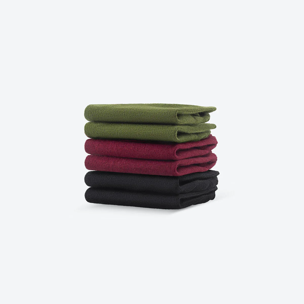 Skinners No Show mix Carmine/Moss/Black (three pack)