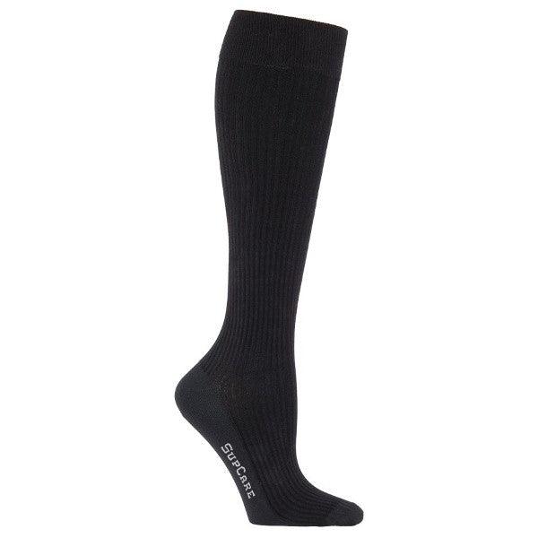 Svarta stödstrumpor är alltid ett säkert och välklätt kort som passar alla tillfällen. Denna modell tillför även en extra dressad känsla tack vare den snyggt ribbade designen. Dessutom ger den mjuka och lena bambuviskosen en extra känsla av lyx som vi tror att de allra flesta uppskattar.
