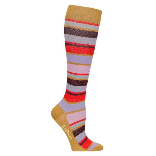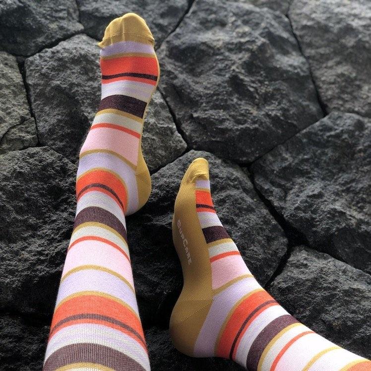 Ett par lekfulla stödstrumpor gör vardagen mycket roligare. Här kombineras både tunna och breda ränder med en kul färgkombination av bland annat senapsgult, orange, rosa och brunt. Detta ger strumporna lite sköna retrovibbar samtidigt som den lena och skonsamma bambuviskosen omfamnar dina ben och fötter på ett fantastiskt sätt. Läs gärna om alla fördelar och egenskaper här nedan: