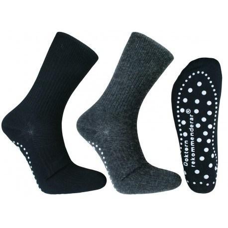 Snygga strumpor från Doktorn Rekommenderar som dessutom är väldigt funktionella. De har nämligen både halkskydd och lös resår. Perfekt för dig som behöver lite extra grepp under fötterna för att hålla balansen. Den lösa resåren på dessa halksockar minskar dessutom risken för blodproppar. Då dessa halksockar även är utrustade med ribbstickningar anpassar de sig efter dina fötters form vilket ger en perfekt passform hela dagen.