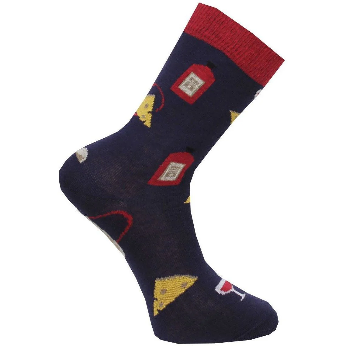 Strumpor som förför. Med motiv av både vin och ost får de nog de flesta att längta till helgen. Förutom sitt lockande utseende har de också mycket komfort att erbjuda. De är nämligen stickade i hela 80% kammad bomull som omsluter dina fötter mjukt och behagligt.
