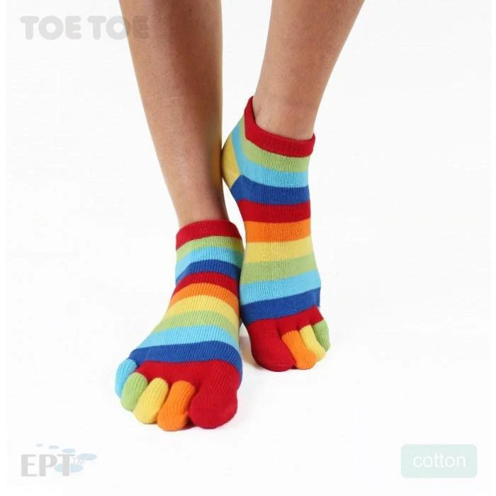 Den tåseparerade modellen gör nämligen att dina fötter och tår behåller sin form och rörelsefrihet vilket också ökar bekvämligheten avsevärt mycket. Förutom ökad bekvämlighet kommer du också märka stor skillnad vad gäller fothygienen vid användandet av tåstrumpor. Tack vare att tårna är separerade bildas ingen svett mellan tårna och dina fötter hålls därmed torra och fria från fotsvamp. Dessa randiga tåstrumpor i regnbågens alla färger gör dig alltså inte bara glad utan håller dig också ren och fräsch!