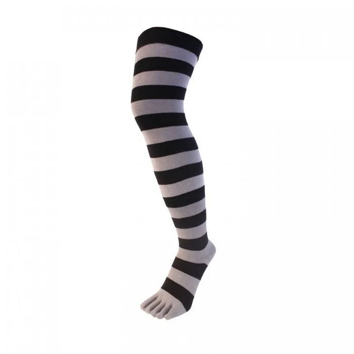 Det randiga mönstret i diskret svart och grått gör dem även väldigt användbara då de blir lätta att matcha med övriga plagg. Dessutom är de designade i form av tåstrumpor vilket håller dina fötter lika flexibla och bekväma som om de vore barfota. Detta medför en ökad blodcirkulation som minskar risken för kalla och stela fötter. Tack vare att tårna hålls separerade i varsitt ”fack” bildas ingen friktion, och heller inte någon svett, mellan tårna. Dessa tåstrumpor håller alltså även dina fötter torra och fräscha mycket mer effektivt än vanliga strumpor.