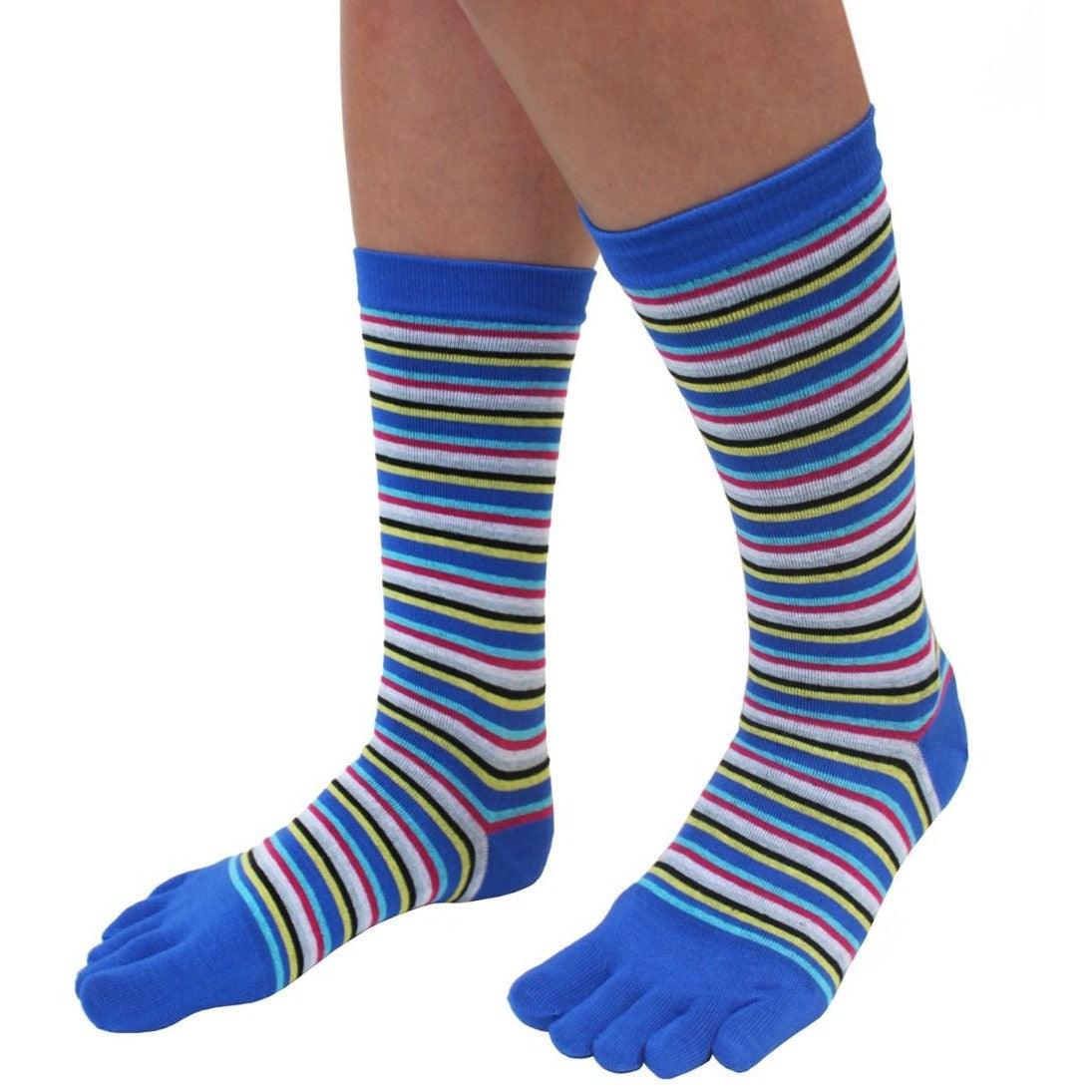 Eftersom tåstrumpor är helt anpassade efter fotens form och behov låter de dina fötter behålla hela sitt rörelsemönster vilket ökar både bekvämlighet och balanssinne. Då dessa strumpor låter dina tår röra sig fritt håller de även igång blodcirkulationen. Användandet av tåstrumpor motverkar därför även kalla och stela fötter. Förutom att dessa strumpor är funktionella så är de även designade i ett smalrandigt mönster i olika härliga nyanser. Med tåstrumpor som dessa håller du dig alltså både bekväm och trendig!