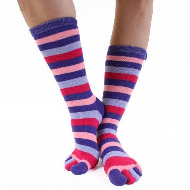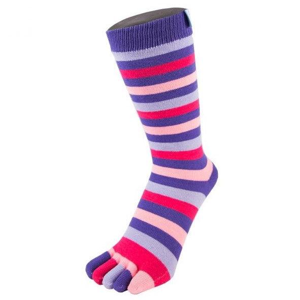 Förutom sin snyggt randiga design har dessa tåstrumpor från TOETOE också många andra fördelar. Den största skillnaden jämfört med vanliga strumpor ligger i rörelsefriheten. Tack vare den specialanpassade designen behåller dina fötter sin naturliga funktion och form, och dina fötter och tår kan röra sig helt fritt precis som om de vore helt nakna. Detta ger inte bara ökad komfort och balansförmåga utan håller även igång blodcirkulationen vilket motverkar kalla och stela fötter. Dessutom minskar användandet av tåstrumpor risken för både fotsvett och fotsvamp då dina tår inte gnids mot varandra på samma sätt som i vanliga strumpor!
