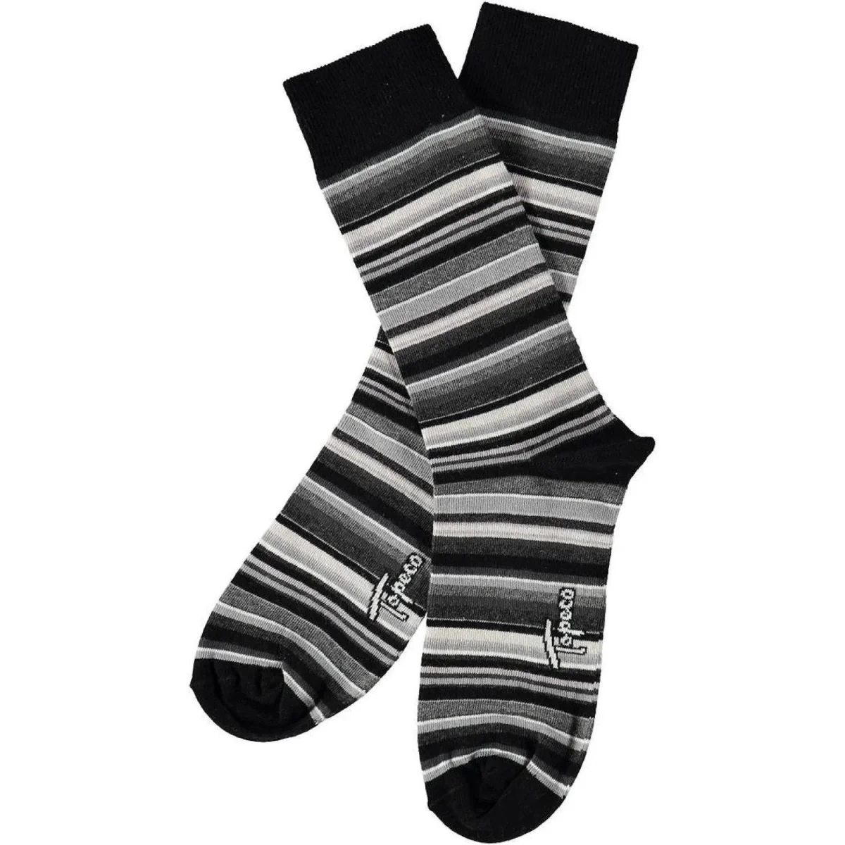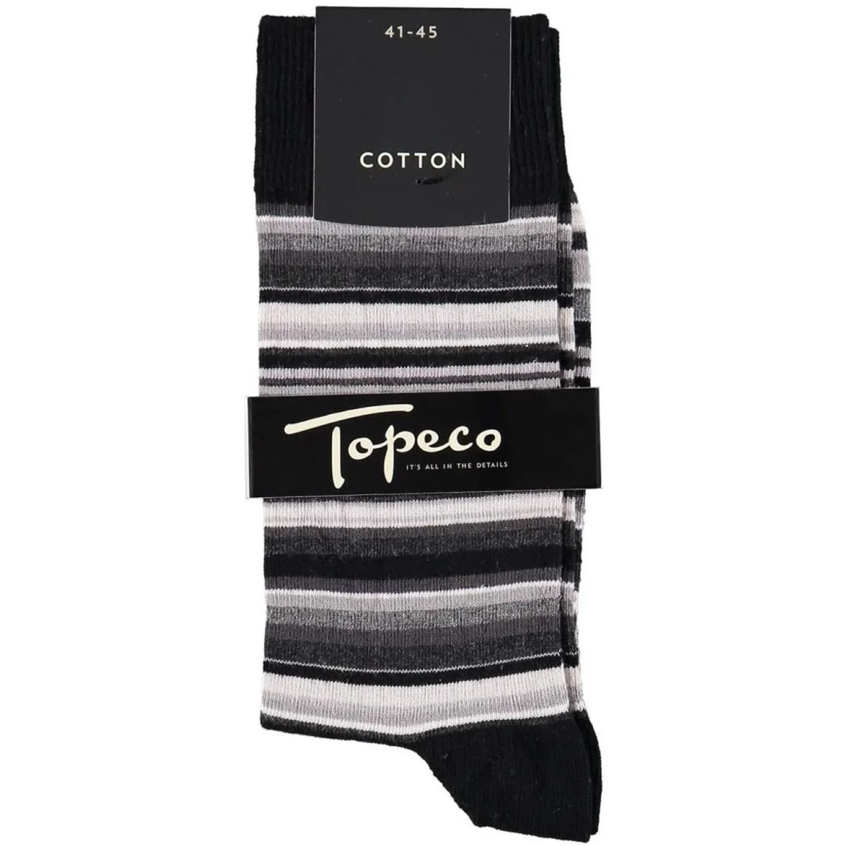 Vill du ha ett stilsäkert kort kan du alltid lita på randigt. Dessa strumpor från Topeco leker med ränder i olika storlekar och färger vilket dessutom gör det klassiskt dressade mer intressant. Tack vare den mjukt elastiska bomullsblandningen kan du även vara säker på att få ett par bekväma strumpor med bra passform.
