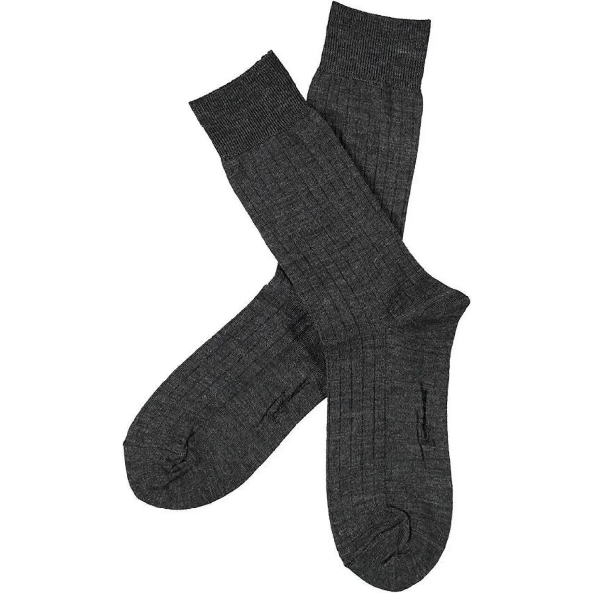 Sobert mörkgrått, dressade ribbstickningar och härligt värmande ull. Allt detta i kombination gör dessa ullstrumpor från Topeco till ett riktigt stilsäkert kort. Ull har dessutom värmereglerande egenskaper som värmer i kyla och även svalkar i värme. På så sätt ser dessa strumpor till att dina fötter hela tiden håller en behaglig temperatur.