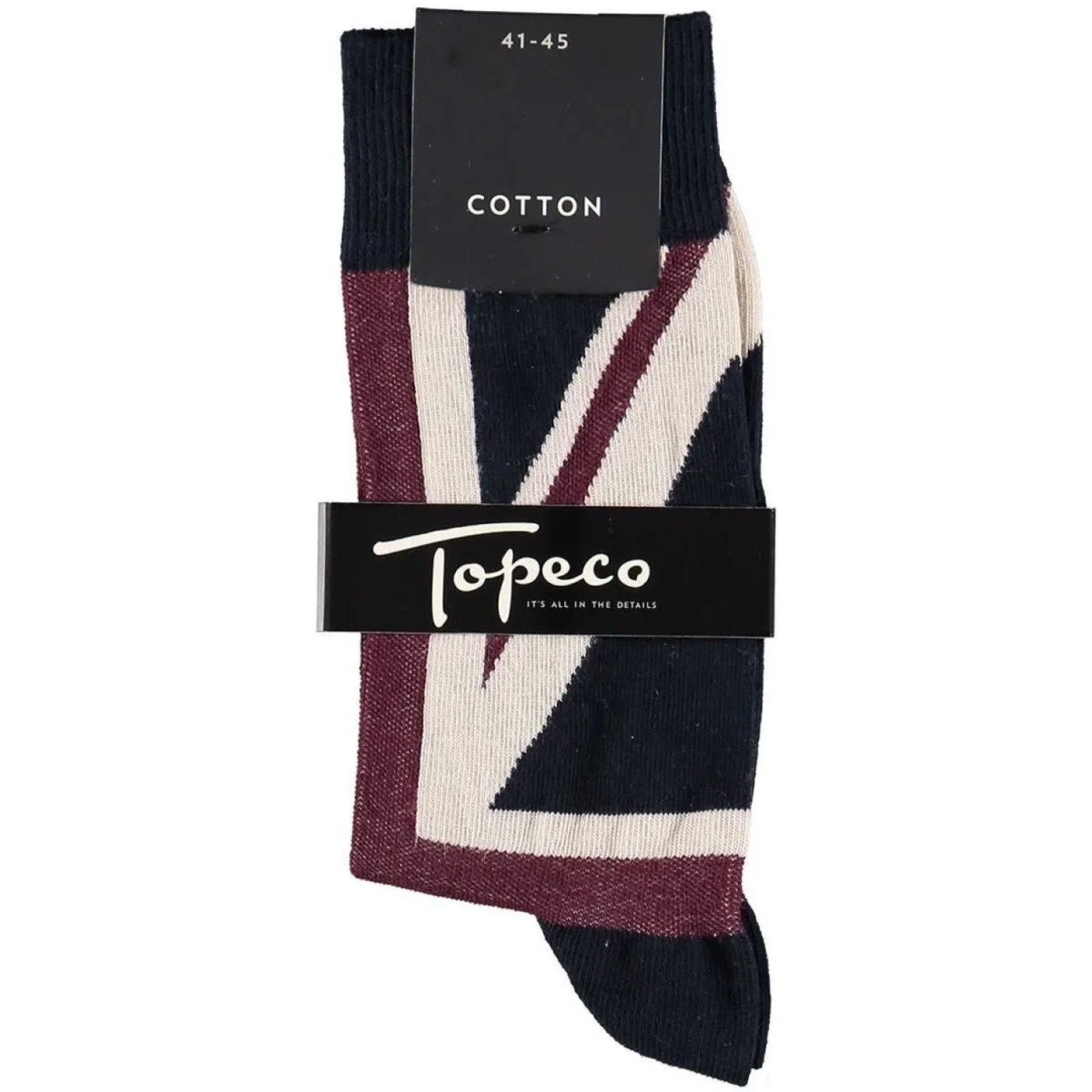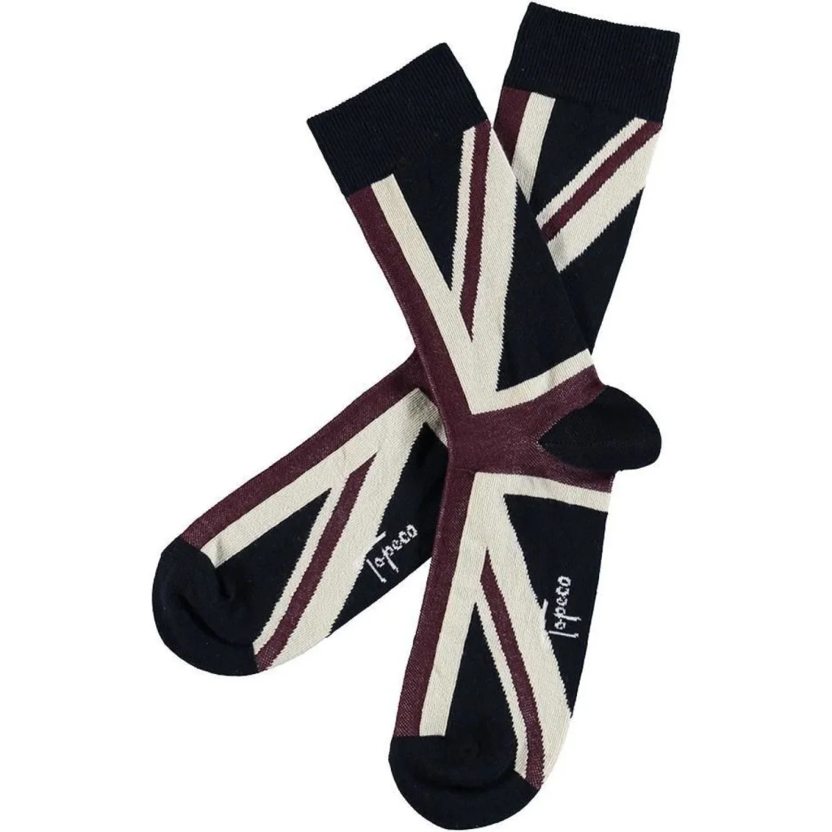 Topecos klassiker med Storbritanniens flagga på är äntligen tillbaka – denna gången i en ny och retroinspirerad tappning. Tack vare ett dovare färgval där de röda och blå partierna gjorts mörkare och de vita partierna ”smutsats” ner och blivit nästintill ljust beige skapas en riktigt snygg vintagelook. Precis som många andra av Topecos strumpor har även dessa en något bredare resår vilket gör att strumporna sitter uppe både bekvämt och ordentligt.