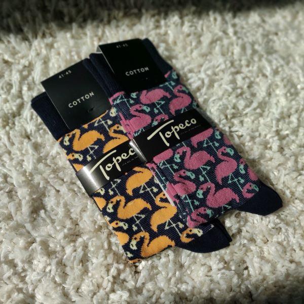 Låt färgglada flamingos lysa upp din vardag! Färgsprakande rosa och mintgrönt på en randigt blå botten får dessa strumpor att sticka ut ur massan. Ibland räcker det med en sådan här liten, men unik detalj för att lyfta hela din outfit. Så låt nu de här snyggingarna lyfta din klädsel till nya höjder!