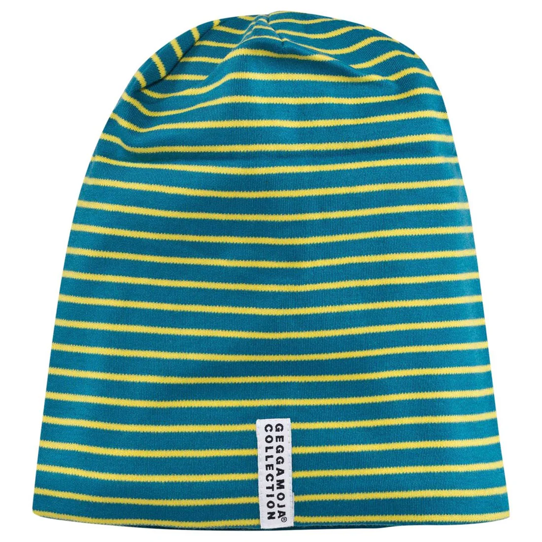 Geggamoja Topline-mössan. Den är en riktig klassiker. Utsidan är enfärgad eller randig med gråmelerad insida. GOTS-certifierad produkt.