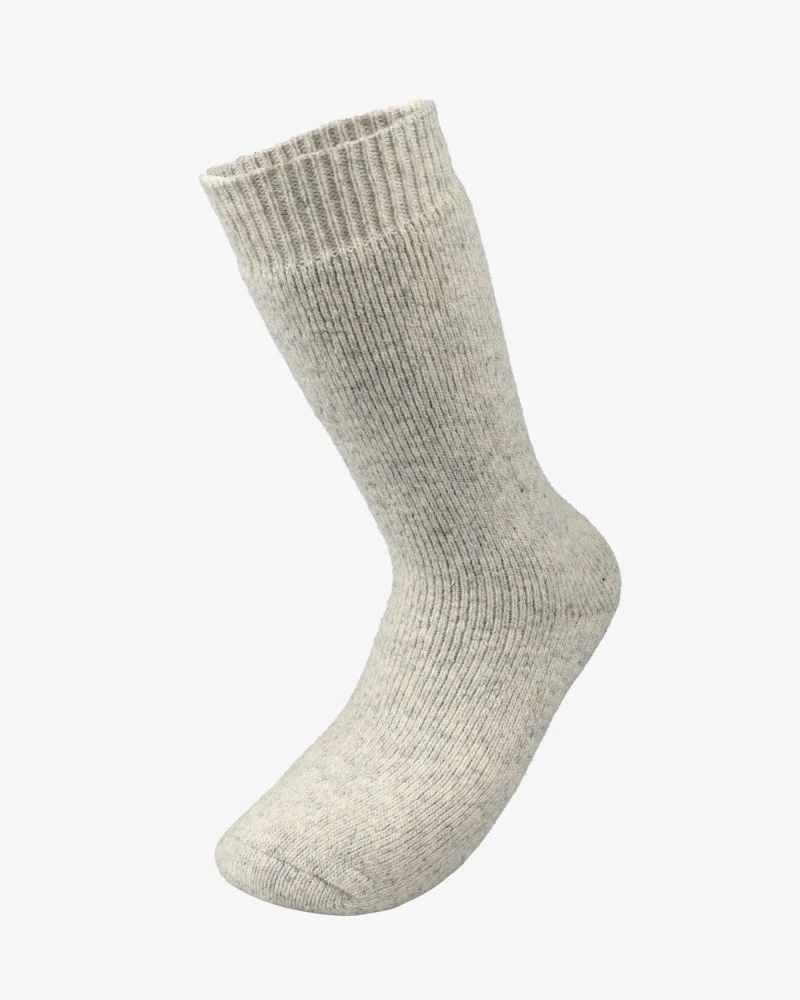 De här ulltermosockorna i en lyxig ullblandning med hela 60% ull ger en oöverträffad känsla av värme och komfort när kylan slår till. Insidan är stickad i mjuk frotté som bildar små luftfickor, vilka isolerar effektivt och håller fötterna behagligt varma hela dagen. Materialet kombinerar ullens naturliga värme och andningsförmåga med polyesterns slitstyrka och en liten andel elastan för perfekt passform. Resultatet är sockor av hög kvalitet som förenar komfort och funktion – idealiska under kalla vinterdagar, både ute i naturen och hemma i soffan.
