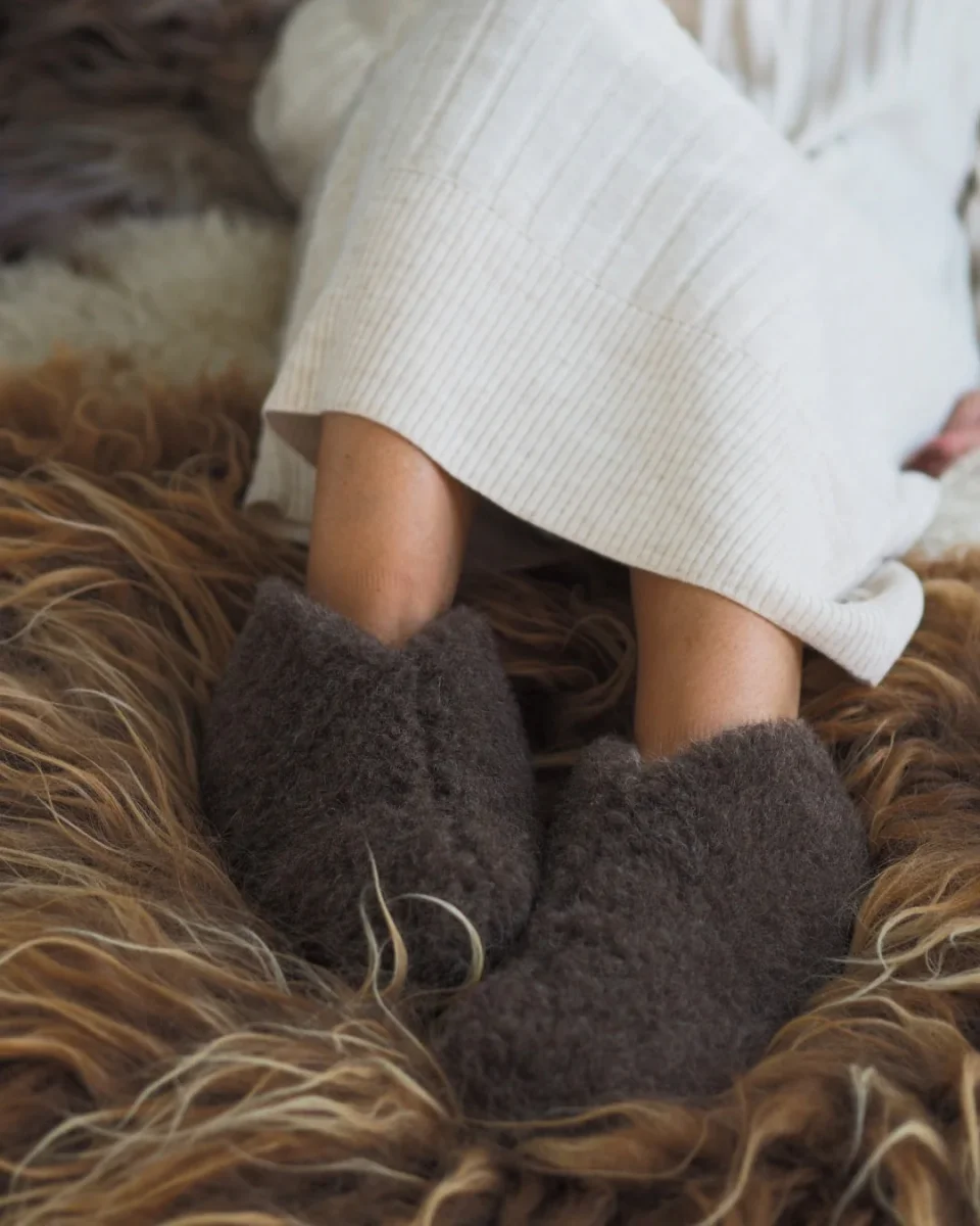 - Mjuka tofflor gjorda av 100% ren och kli-fri ekologisk merinoull