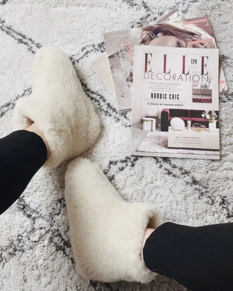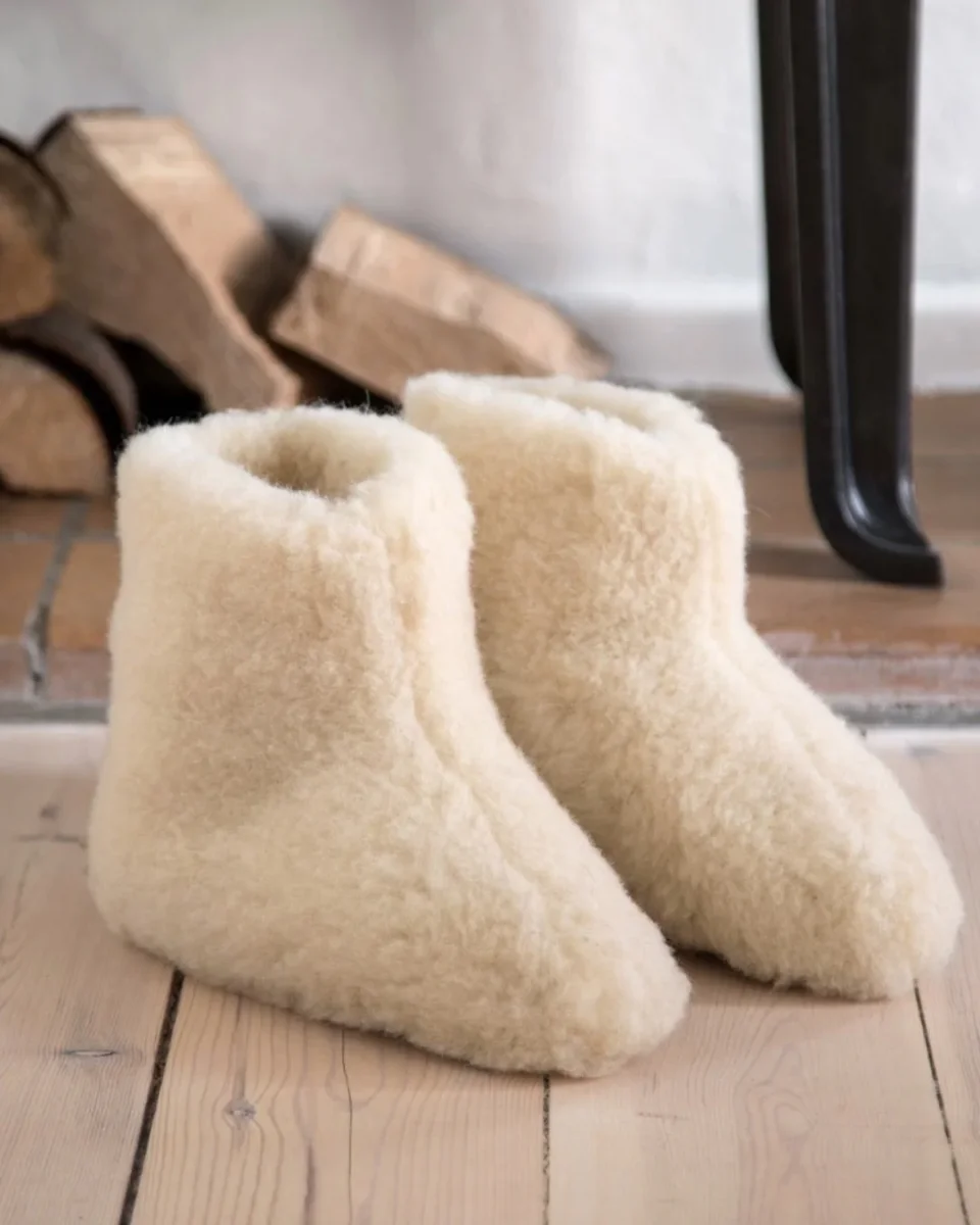 Mjuka tofflor tillverkade av 100% ren, kli-fri merinoull