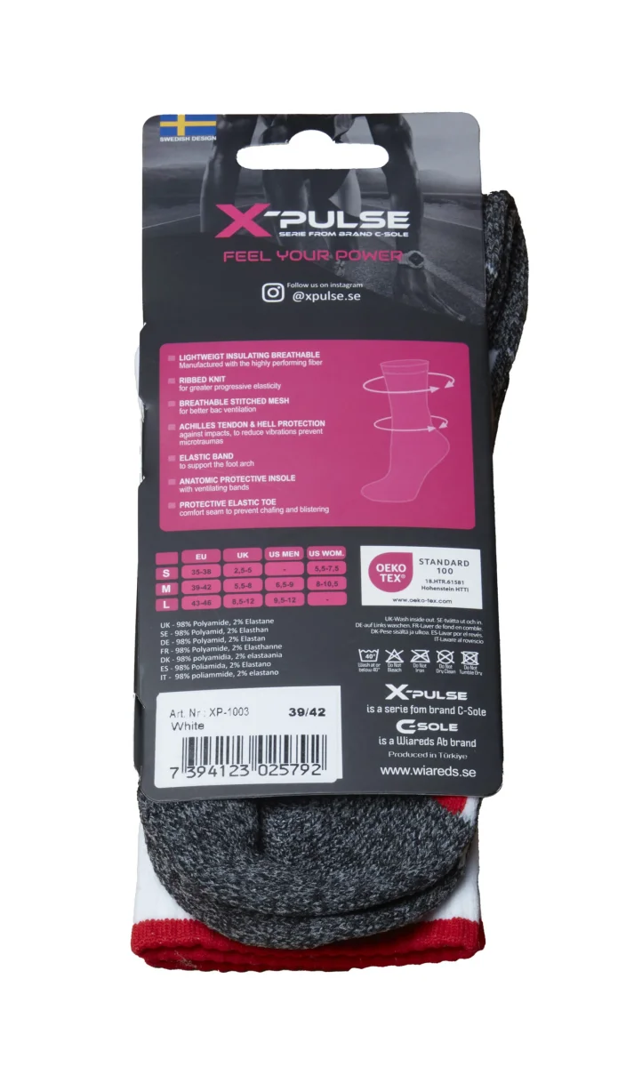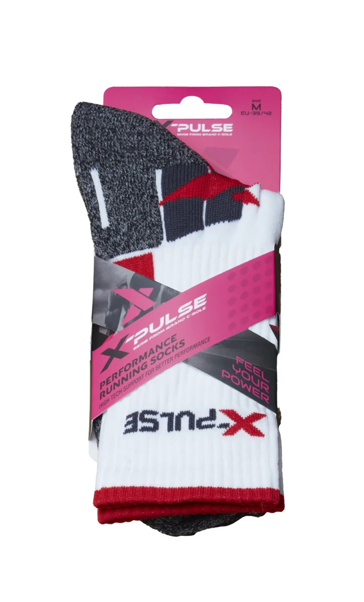 X-Pulse by C-sole 1003 Running Sockan har frottésula och vristresår för maximal komfort. Tillverkad i 68% polyamid/29% polyester/2% elastan.