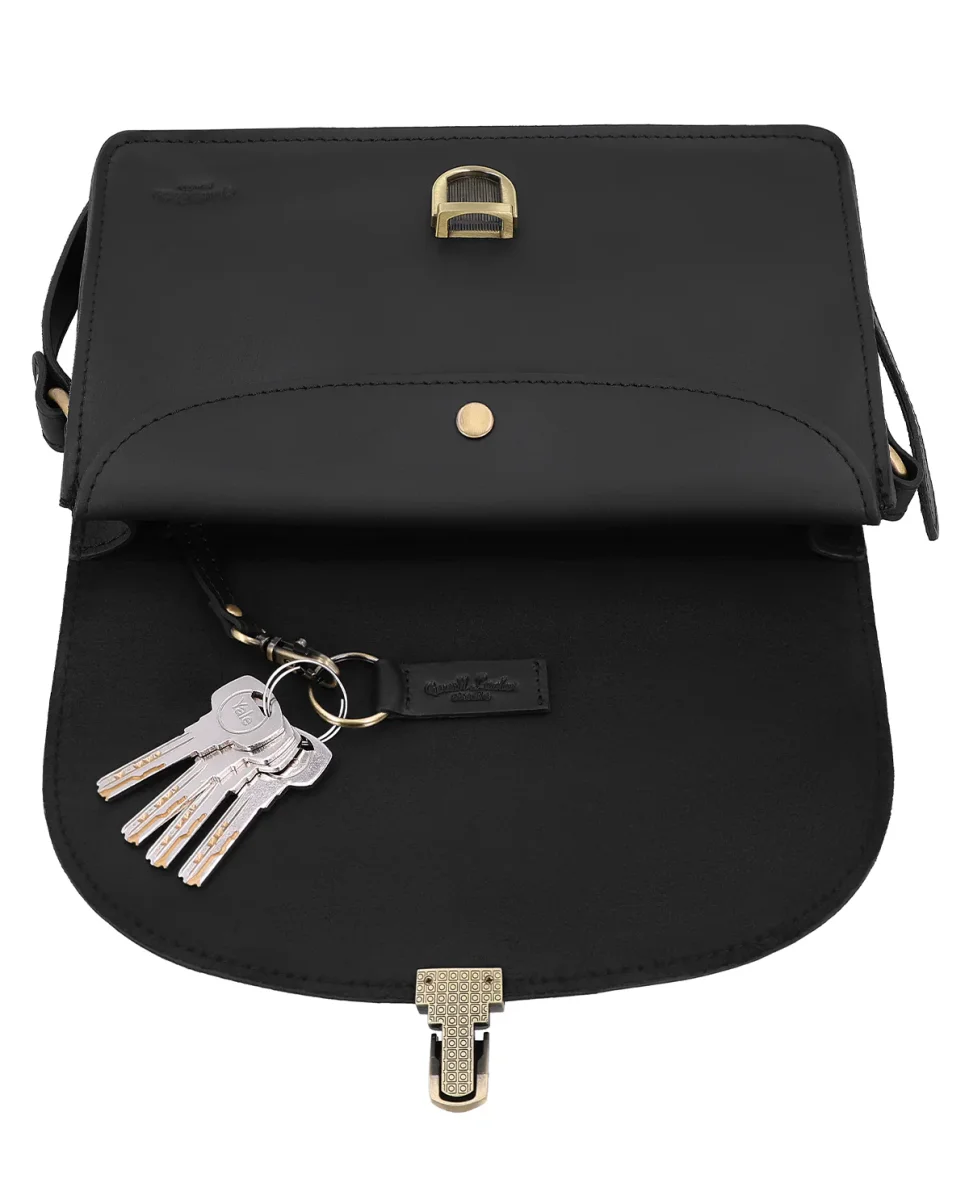 I denna klassiska handväska med två extra innerfack kan du ta med dig allt du behöver i vardagen eller för en kväll med dina nära och kära! Här finns inte bara plats för din aktuella favoritbok. Särskilt praktiskt: Inuti finns en avtagbar nyckelringhållare där du kan fästa dina nycklar säkert och ändå ha dem snabbt till hands. För en personlig touch finns dessutom en graverad patch integrerad, så att du kan anpassa ”Zoey” efter din egen smak. Du kan också ta med dig ”Zoey” till nästa fest, eftersom den inte bara är elegant utan också festlig. Den mattguldfärgade snäpplåset är lätt att hantera och kompletterar den eleganta vintage-looken hos ”Zoey”. Inspirerad av den livliga storstadsatmosfären i Berlin förenar ”Zoey” urban stil med tidlös elegans.